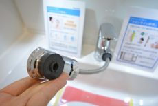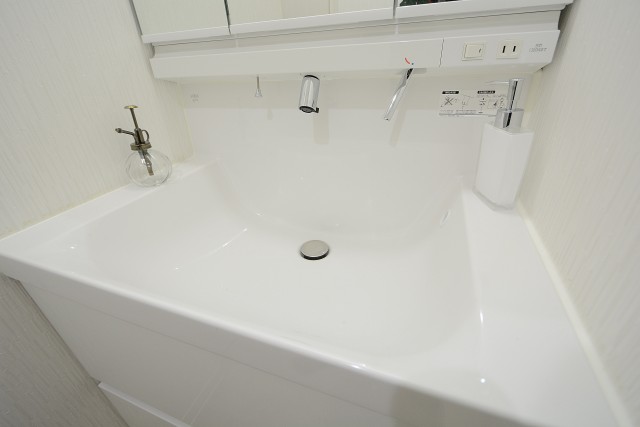 洗面化粧台は水洗がビルトインタイプです。水洗の根本に水たまりもできず、お掃除もラクです!もちろん必要な時はノズルが伸ばせます。