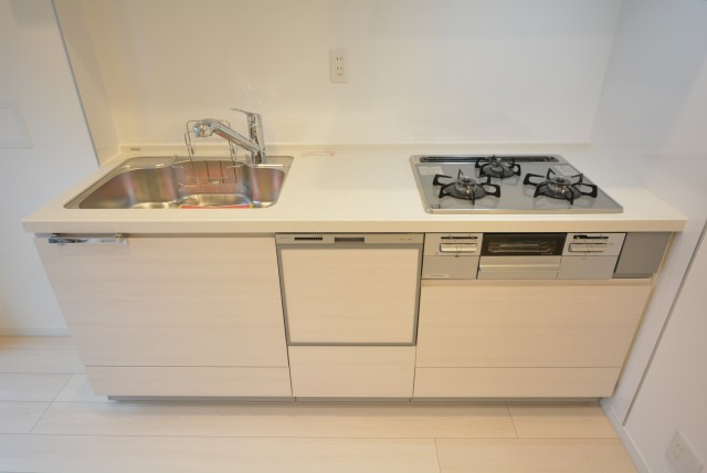キッチンは浄水機能付き水栓、3口ガスコンロにグリル付きとスペック◎!