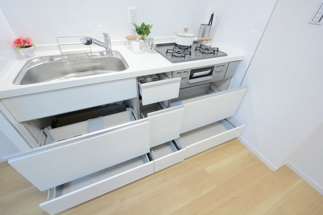シンク下の収納スペースには大きなお鍋やフラインパンもすっぽり仕舞っておけそうです。