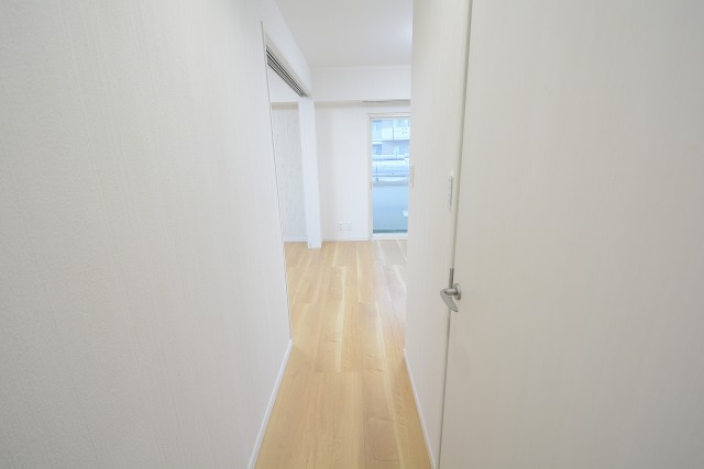 玄関をあがると目の前は廊下。突き当たって右方向へのびています。