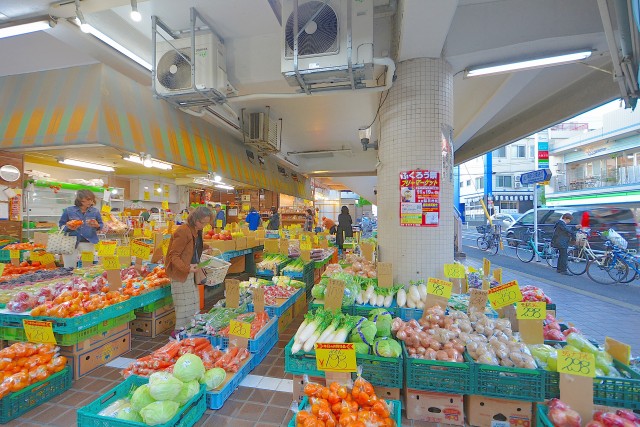 下の階には八百屋、鮮魚店、ドラッグストア、飲食店などの店舗が入っています。
