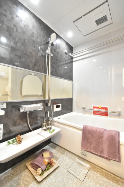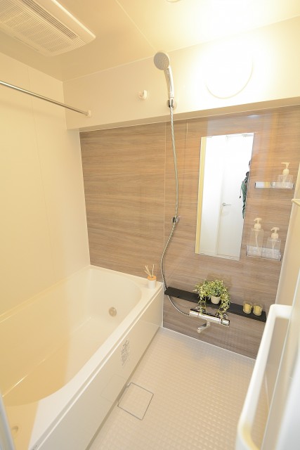 バスルームは追い焚き、浴室換気乾燥機能付きと設備充実。