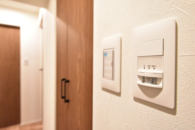 さっそく室内へ。玄関には人感センサーがついており、人の気配で自動で照明が消灯します。スイッチを押す手間が省けるうえ、消し忘れが無く経済的です。