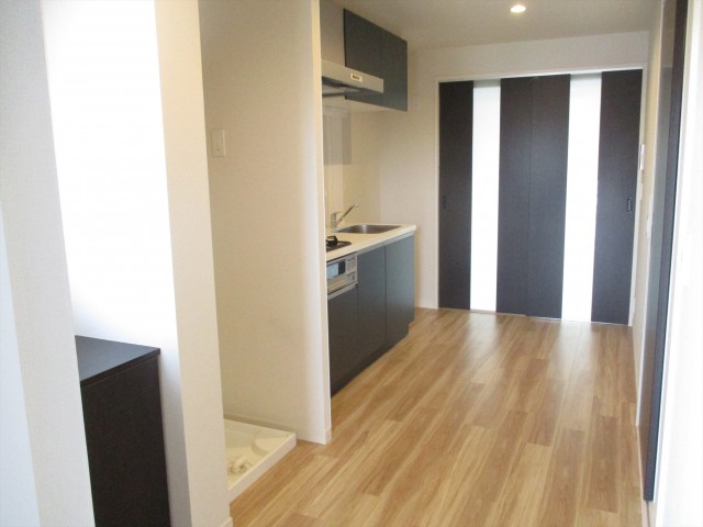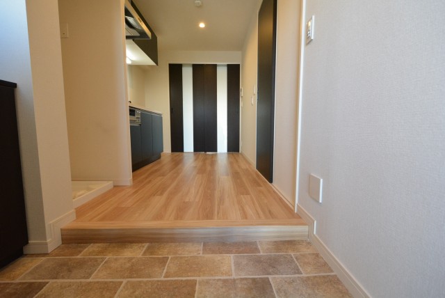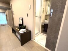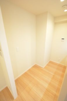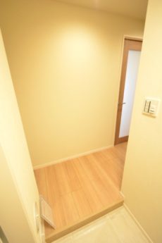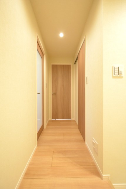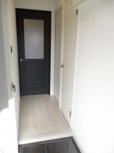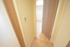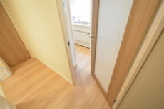 ドアを開けると正面は壁になっていて、宅配便やフードデリバリーの受け取り時にお部屋の中が見えづらくなっています。最近は利用する機会も増えましたから、これは有難いですね。廊下は上り口から右方向に伸びています。