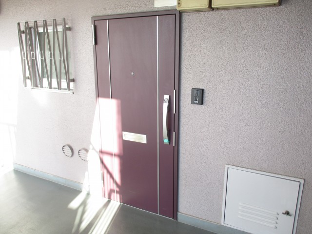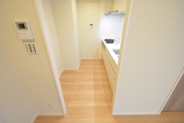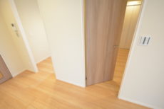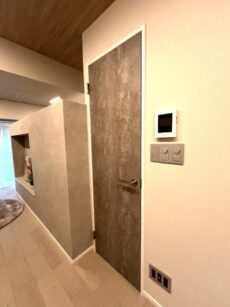 玄関ドア横にはモニター付きインターホンが設置されて、お部屋の中から訪問者を確認する事が出来ます。映像で確認してから応対するかを決められるので、しつこいセールスなどにつかまる事もありません。