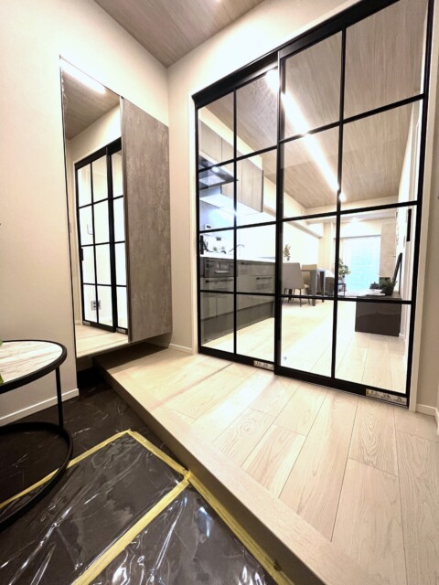 玄関は幅が広くゆったりとした印象。正面にはLDKとの仕切りにガラスドアが使用されていて抜け感がありおしゃれな雰囲気です。帰ってくるのが楽しみになりそうですね♬