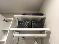 サニタリールームとは離れた場所にあるので少し気を遣いますが、靴下などの帰宅してすぐ洗濯機に持って行きたい物を入れるのには便利ですね(´ー`* )