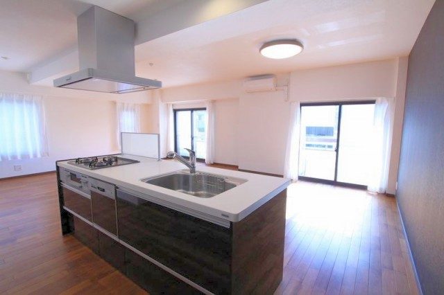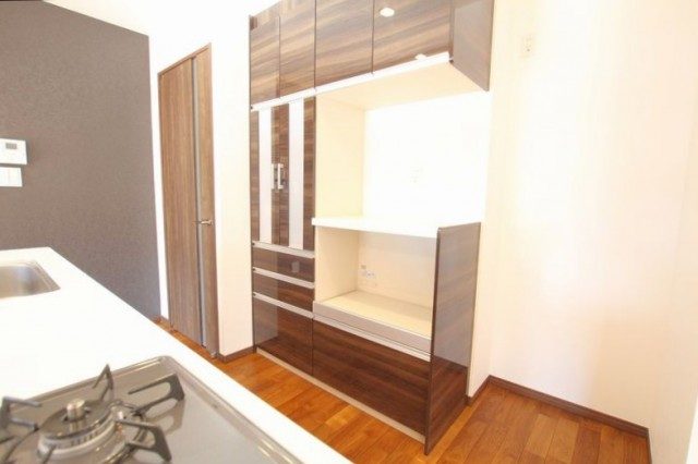 料理が好きになる最新システムキッチン付、遊ぶお子様の姿が見えるので、安心して料理楽しめます。
