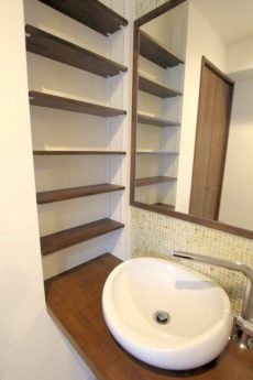 ホテルライクな印象を与える大型1面ミラーがスタイリッシュな印象を与えます。