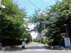 まっすぐ歩いていくと、左右を大きなマンションに囲まれた街路樹のある道になっていました★