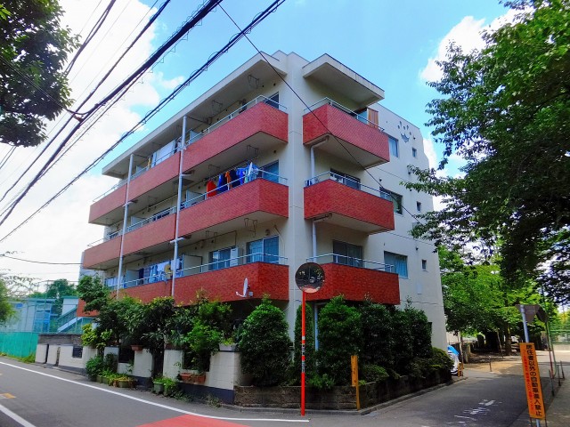 大東学園高校を通り過ぎると、見えてきました。赤いタイルが印象的な『千歳船橋サマリヤマンション』です!!
