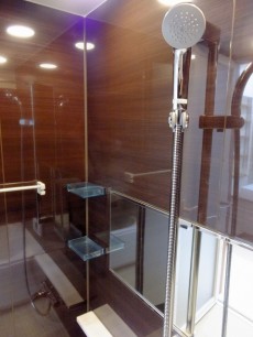バスルームはラグジュアリー感のあるブラウンのパネルでゆったり落ち着いた感じですね♪