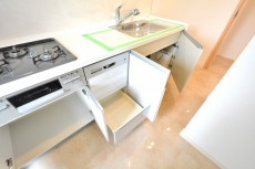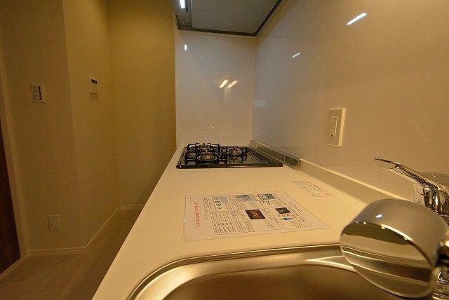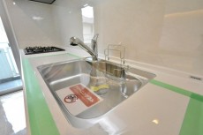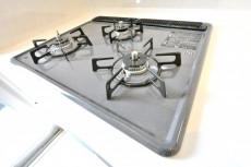 3口のグリル付きのガスコンロ、浄水機能付きの水栓等の設備となっています。