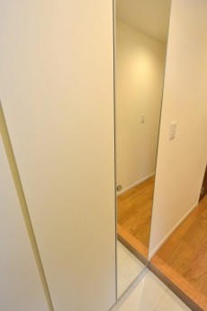 玄関左にはシューズボックスがあります。扉には全身を映せる鏡が付いているので、お出かけ前の身だしなみチェックはこちらでどうぞ♪