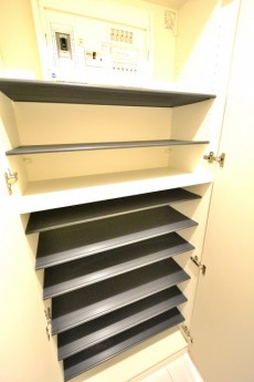 北東側には収納棚が付いています。棚板は可動式なので、収納する物によっていろいろとアレンジしてみてください♪