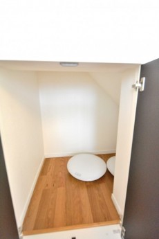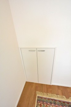 お部屋の西側に小さな扉があります。開けてみると、階段下の倉庫になっていました。