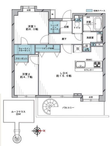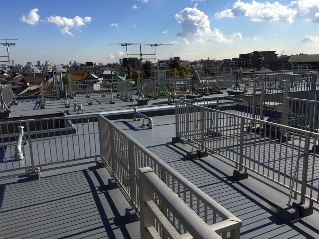こちらが22.00㎡のルーフバルコニー。同じ様なスペースがたくさん並んでいて、屋上が手摺で区切られている感じですね。プライベート感はありませんが、花火の時などはみんなで盛り上がれて楽しそうです。ご近所さんと仲良くなるチャンスかも(*´▽`*)ルーフバルコニーは下に他所のお部屋がある事が多いため振動とかに気を使うんですが、ここはご自分のお部屋の上ですから少し気が楽ですね。