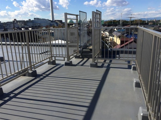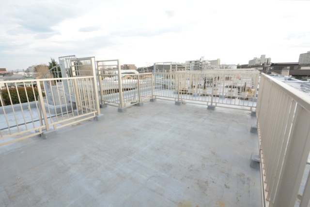 ルーフテラスは15㎡。一部屋一部屋ずつ柵で区切られています。洗濯物をため込んだ時など、ルーフテラスに干せば日当たりも抜群で一気に乾いちゃいますよ。