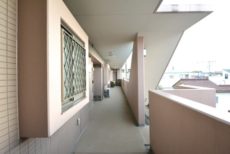 エレベーターを降りると、外廊下。吹き抜けを囲むように回廊になっています。