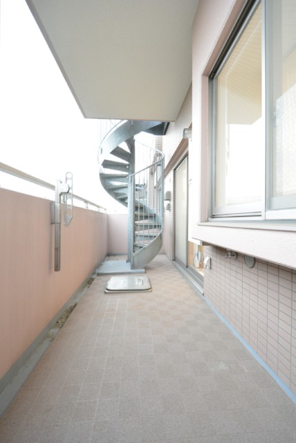 バルコニーにはらせん階段があります!!この物件の最大の特徴のルーフテラスに向かいます♪♪