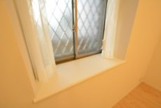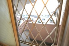出窓になった窓の外は外廊下。しっかり面格子も設置されていました。