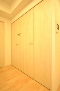 リビングダイニングに入ってすぐのところにクローゼットがあります。天井までの収納スペースです。普段使いの物などはこちらにすべて収納できそうです♪♪急なお客様の時でも生活感を隠せてgood☆