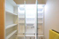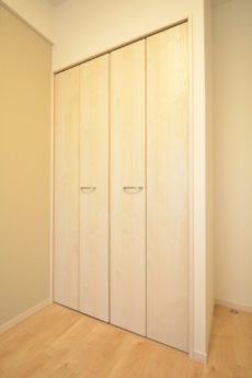 収納は間口が広くて使い易そうなクローゼット。中の確認しやすい収納は無駄な買い物を減らしてくれるらしいですよ。持っている物を常に把握するのがいいんだそうで。そう言われればタンスの奥にしまったまま忘れてる物って結構ありますよね^^;)