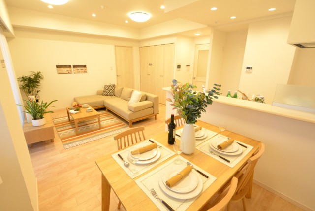 お部屋は最上階の3階。リビングダイニングキッチンには足元から暖める床暖房がついています。