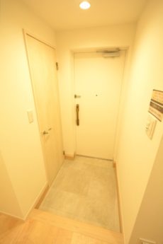 振り返って玄関の様子。玄関ドアにはダブルロックが設置されていて、防犯面でも安心ですね。