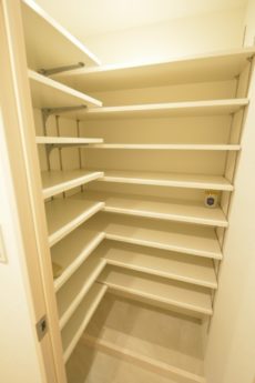 小さいですが、床から天井までの収納が付いています。食品のストックなどを入れておくのに便利ですね♪♪