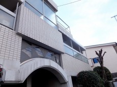 外観は白のタイル張り。当時のバブル期を思わせるモダンなデザインです。