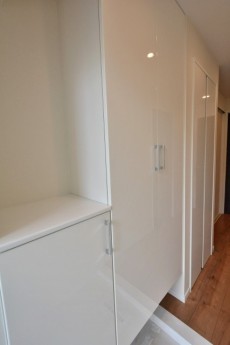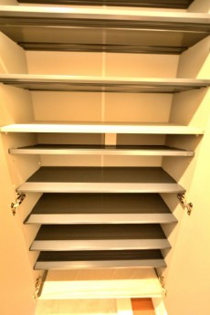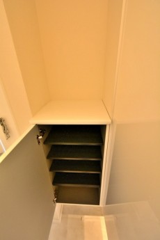 玄関左にはシューズボックスがあります。手前のシューズボックスはカウンターになっていますので、お花や写真、絵などを飾って素敵な玄関ホールを作ってください☆