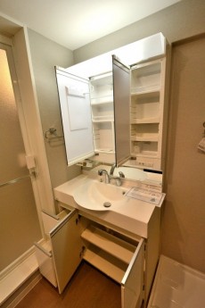 洗面台は左右のカウンターが大きく、収納スペースもたくさんあるので、とても使いやすそうです。