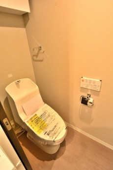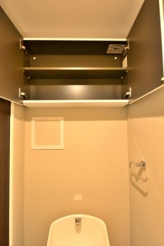 トイレは横幅が広くゆったりとした空間です。上部に吊り棚があるので、室内はスッキリさせられますね☆