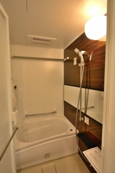 バスルームは木目調のパネルが落ち着いた雰囲気を出していて、とても綺麗です。