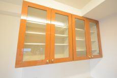 キッチン後ろに食器棚が作り付けになってます。