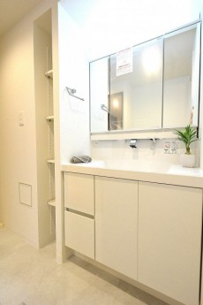 洗面台は三面鏡で使いやすく、シャンプードレッサータイプで機能的です。