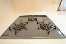 コンロは3口、片面焼きグリルがついています。