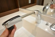 水栓はヘッドが伸びるハンドシャワータイプですので、シャンプーとかも出来ちゃいますよ。