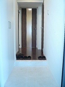 玄関をあけますと、真っ白な玄関ホールがみえました。左側にはトールサイズの立派な玄関収納があります。