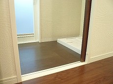 洗濯機置き場です。収納場所はありませんでしたが、後ろを振り向けば洗面台があります。