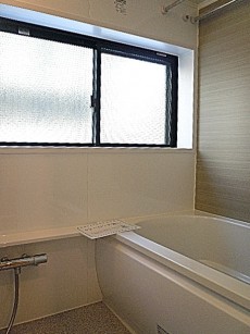 正面にあるTOTO製追炊き機能付きバスルームです。浴室換気乾燥もあり、洗濯物も干せちゃいます。竿も2本あります。大きなバスタオルも広げて乾燥できそうです。助かる機能もありつつ~自然換気もバッチリできる大きな窓☆☆☆光を感じながら朝の入浴も楽しめそう♪