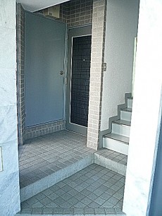 エントランス入口になります。階段を上がりますと集合ポストと安心のオートロックがあります。