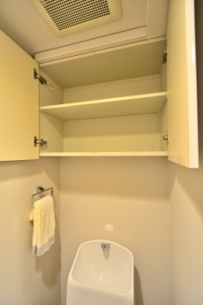 洋室の隣にはトイレがありました。上部に大きな吊り棚があるので、トイレットペーパーのストックから掃除道具までいろいろ収納できてとてもスッキリ清潔にお使い頂けます(^_-)-☆