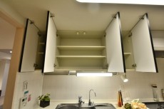 収納スペースも充実☆キッチン下の引き出し収納と上部の吊り棚があるので、食器棚は必要ないかもしれません(^v^)