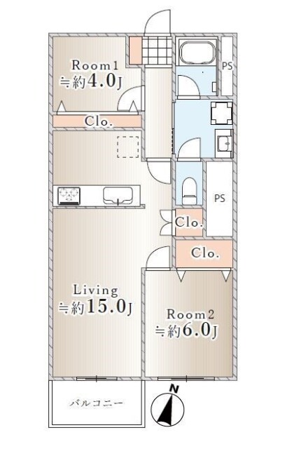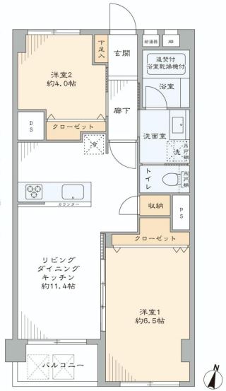 間取りのご紹介です。2SDK、専有面積は51.08㎡。