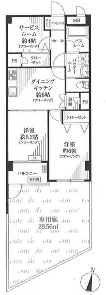 29.56㎡の専用庭付きのお部屋です。(専用庭使用料:月額1,550円)