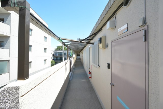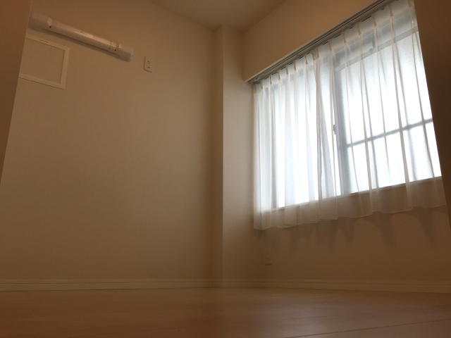 廊下進んで右手、約4帖の洋室です☆開口部は北側、外廊下に面しています。