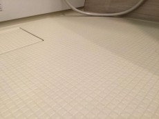 ミラー横のポケットにシャンプーボトルなどの小物をしまえば見た目も使い勝手もバッチリ◎モザイクパターンの床は、すばやく乾燥、楽々お手入れ♪♪