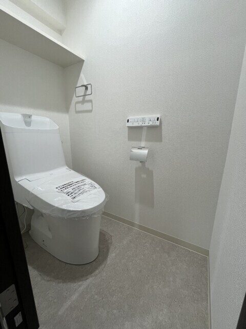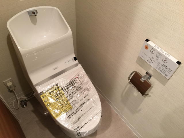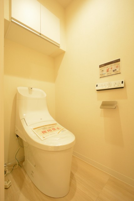 TOTOのウォシュレットトイレは吊戸棚も設置してあります。